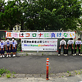 生徒会が医療従事者の皆様へメッセージの横断幕を作成